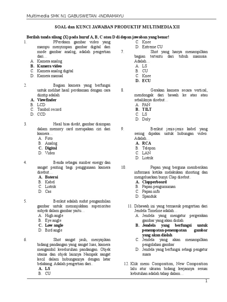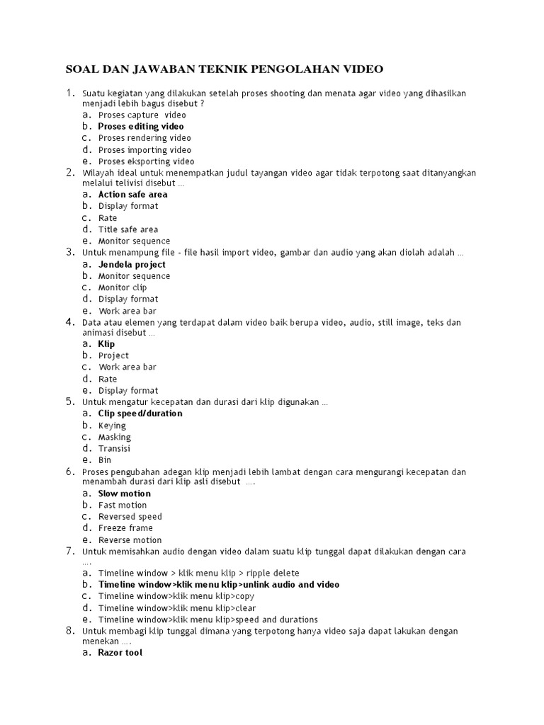 SOAL DAN JAWABAN TEKNIK PENGOLAHAN VIDEO