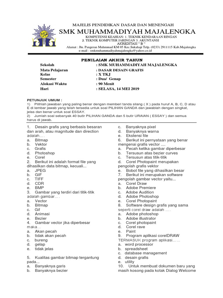 Soal UTS Essay Dasar Desain Grafis Kelas X SMK ~ Program Berorientasi Objek