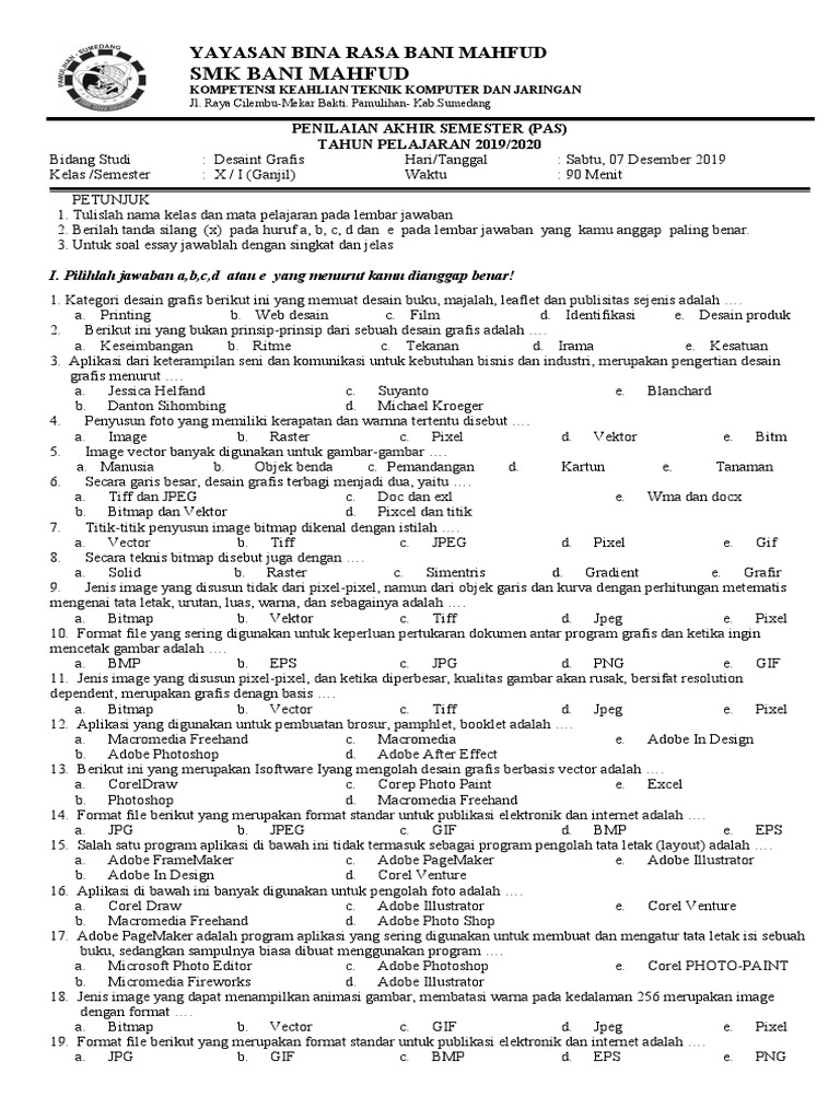 Contoh Soal dan Jawaban Desain Grafis 2020 SMK - Manglada Tech