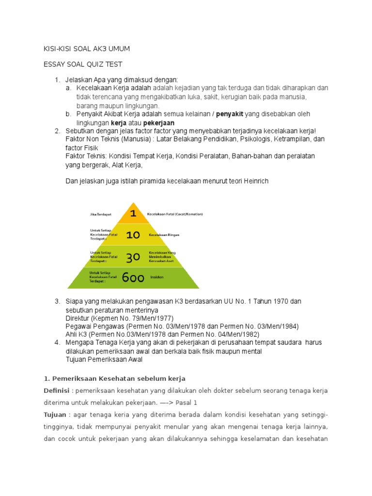 Contoh Soal AK3 Umum (Ahli Keselamatan dan Kesehatan Kerja Umum …