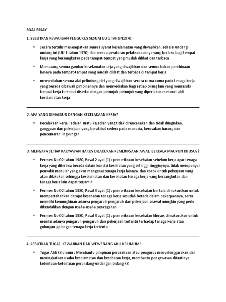 Latihan Soal Essay Ahli K3 Umum