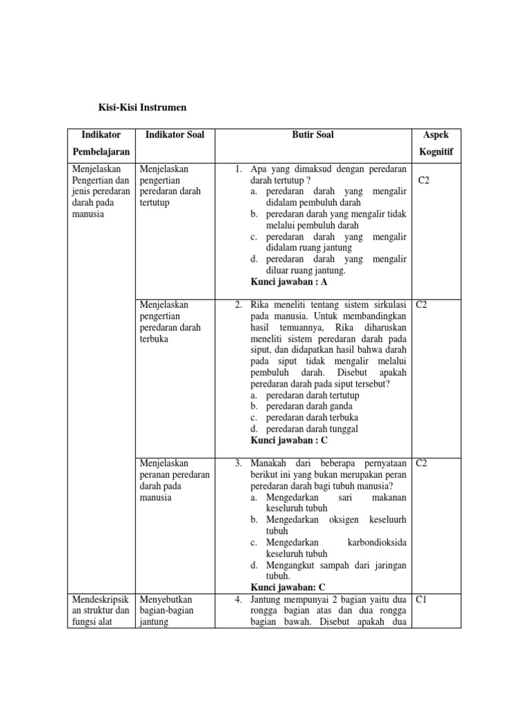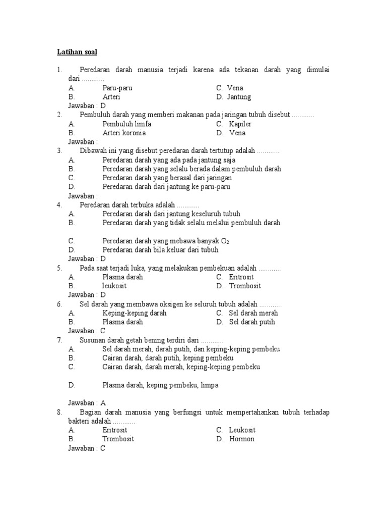 DOC) SOAL DAN JAWABAN SISTEM peredaran darah bio 8 | Arman To …