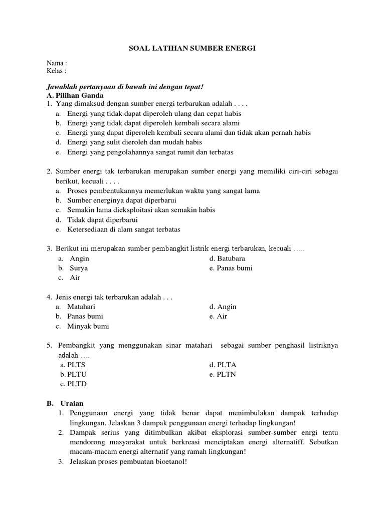 Soal Latihan Sumber Energi