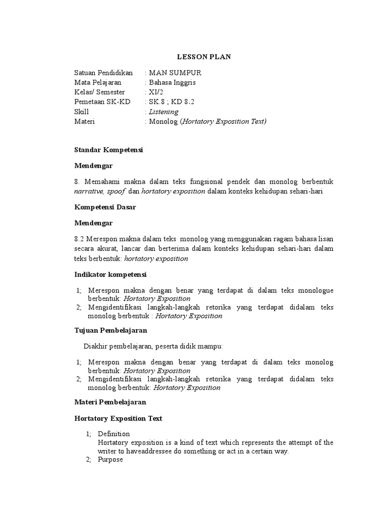DOC) LATIHAN SOAL BAHASA INGGRIS SMA HORTATORY EXPOSITION | Siti Munajiyah - Academia.edu