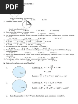 Matematika Sd Kelas 6 Semester i Soal Lingkaran