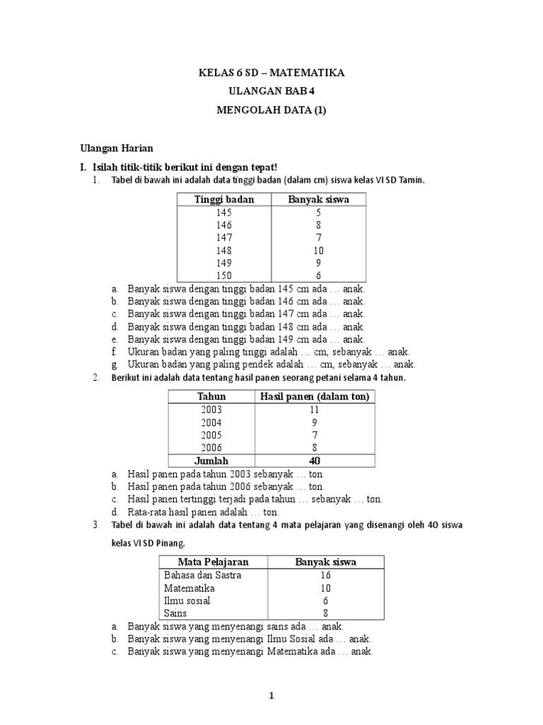 Soal Essay Matematika Kelas 6 Sd Semester 1