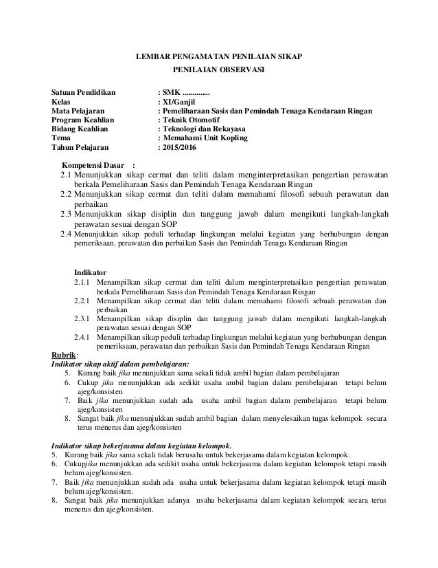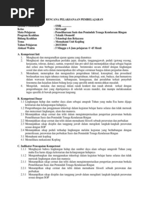 Rpp Pemeliharaan Sasis Dan Pemindah Tenaga Kendaraan Ringan Kelas …