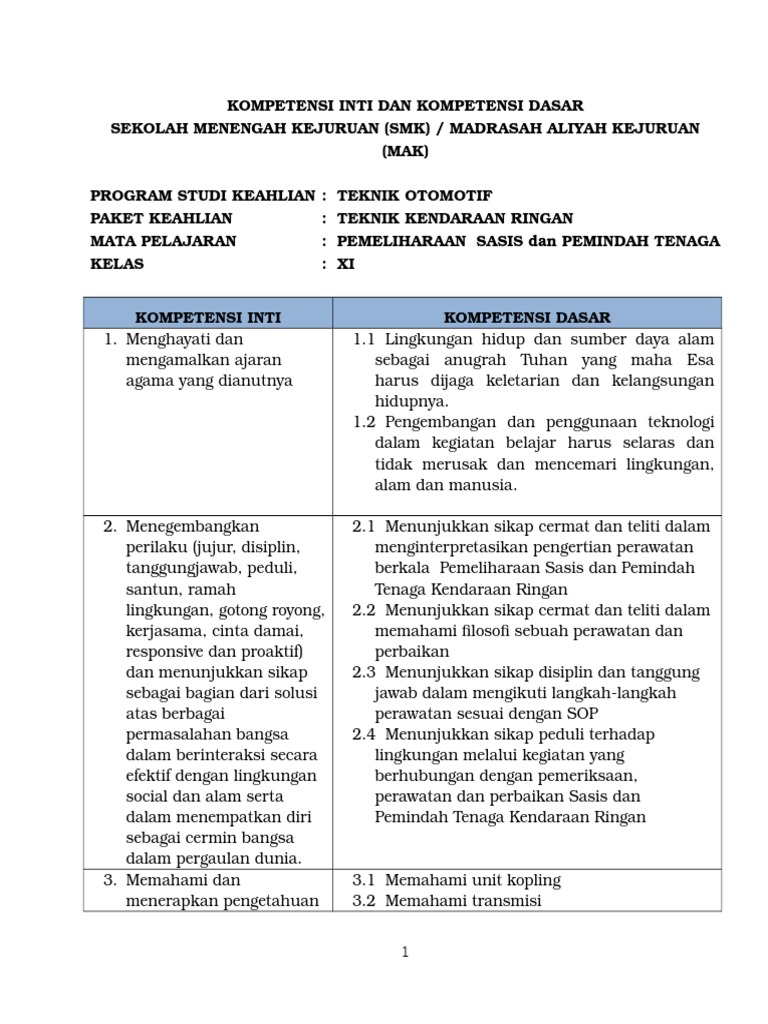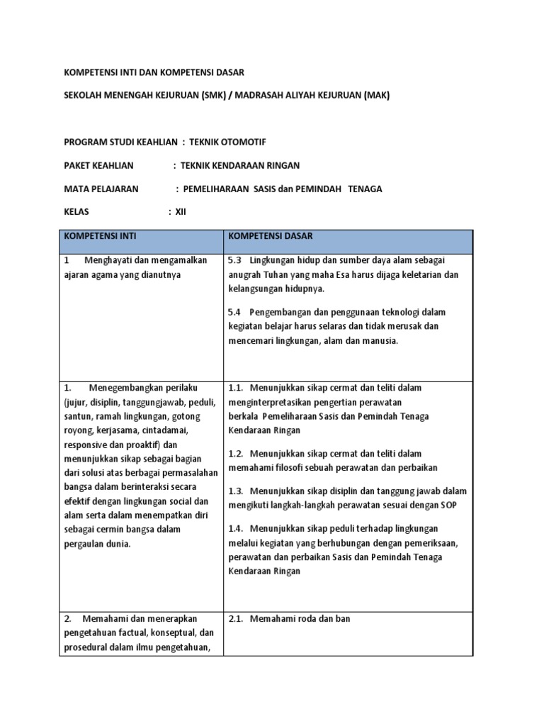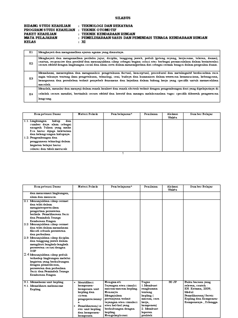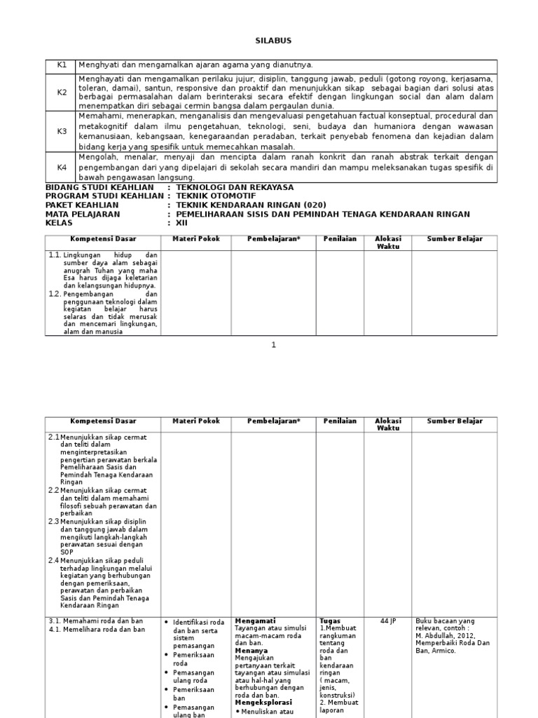 Silabus Tkr Sasis Oto Kelas Xii