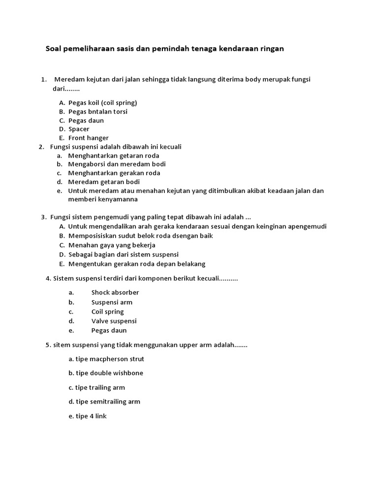 Soal Essay Pemeliharaan Sasis Dan Pemindah Tenaga Kendaraan Ringan