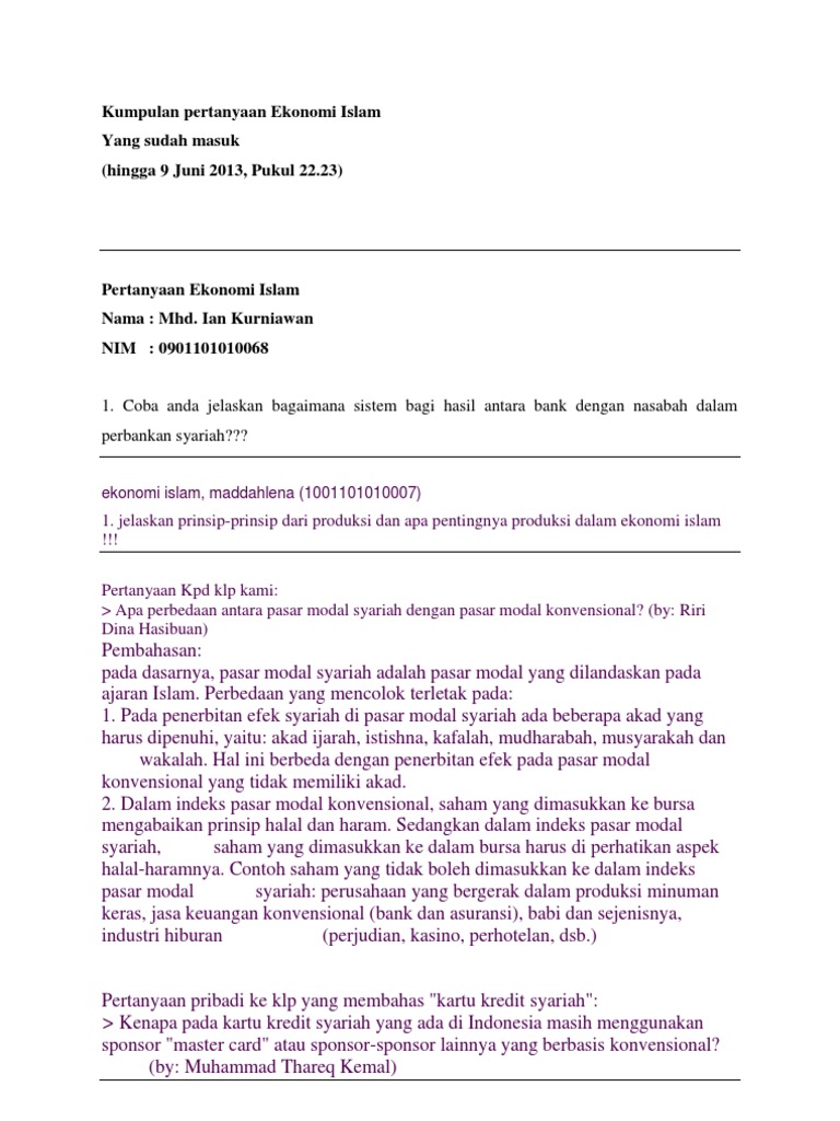Pertanyaan tentang Bank Syariah & Kunci Jawaban Lengkap - Muttaqin id
