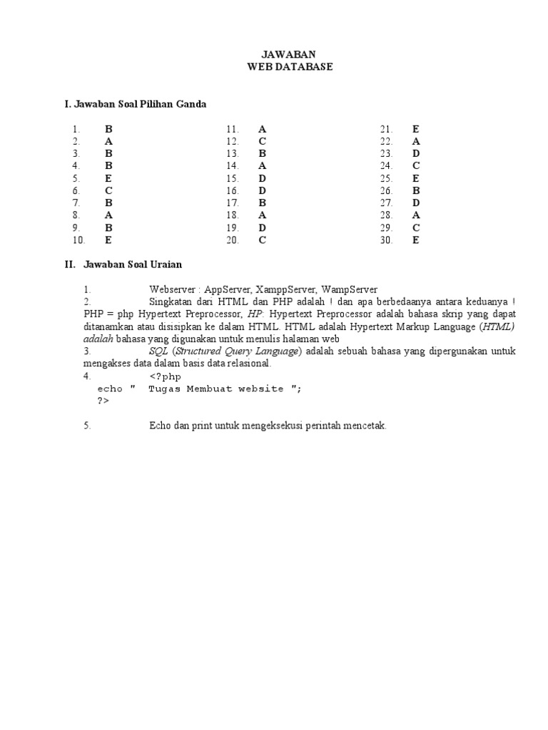 Contoh Soal Pilihan Ganda Basis Data Dan Jawabannya - Dapatkan Contoh