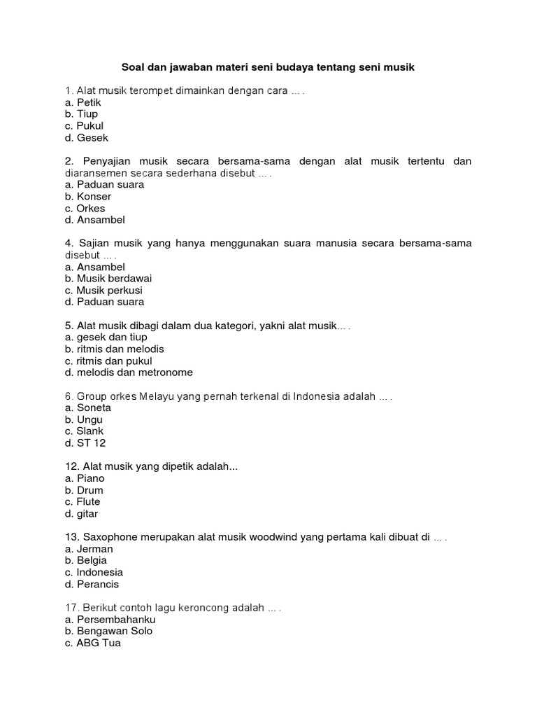 Soal Dan Jawaban Materi Seni Budaya Tentang Seni Musik