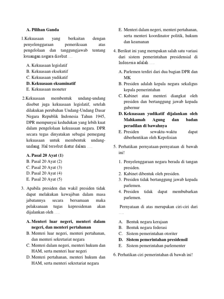 Soal PPKn : Sistem Pemerintahan Lengkap - Muttaqin id