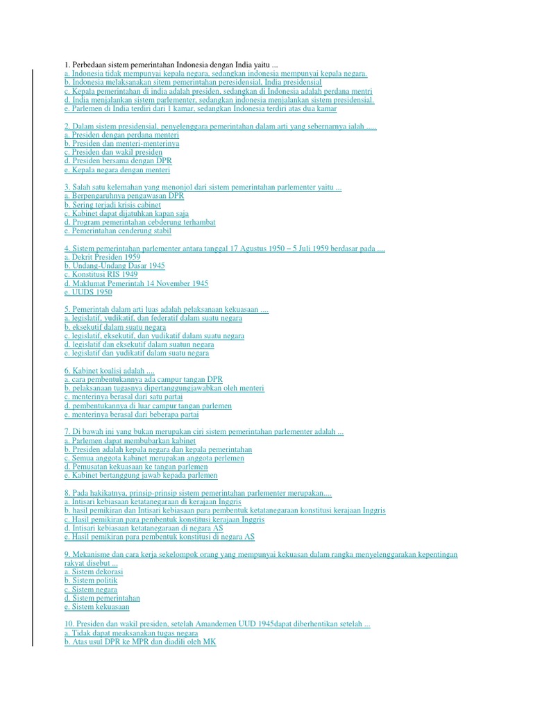 50 Soal Sejarah Sistem Pemerintahan Negara Indonesia, Jawaban …