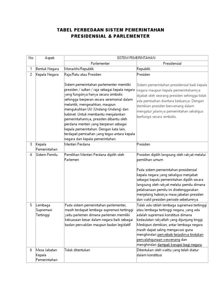 9. Uraikan Perbedaan Demokrasi Parlementer Dengan Presidensial