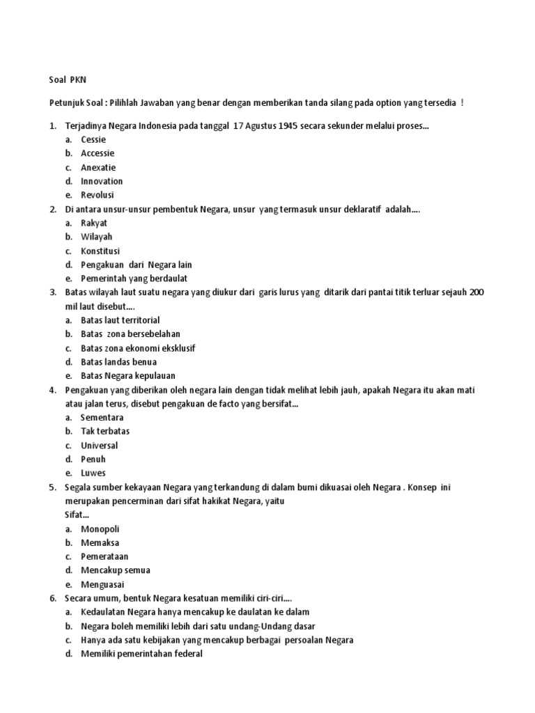 Soal Dan Kunci Jawaban Latihan Ukk Pkn_s