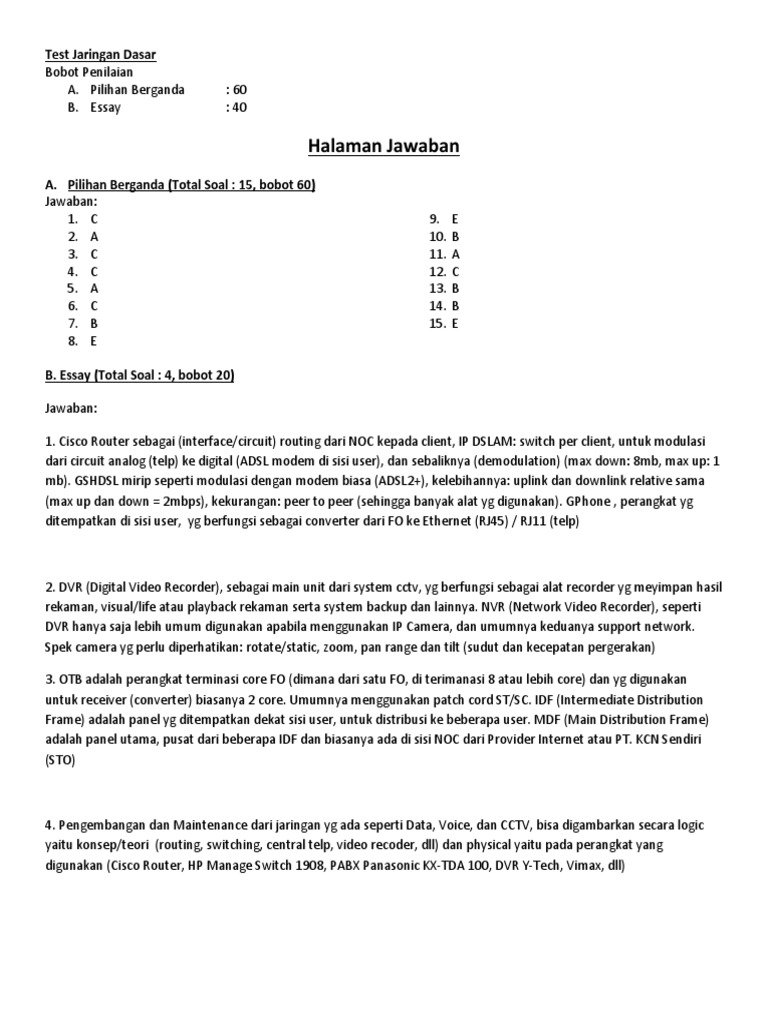DOC) Soal Essay 1-10 TKJ | cakar lele - Academia.edu