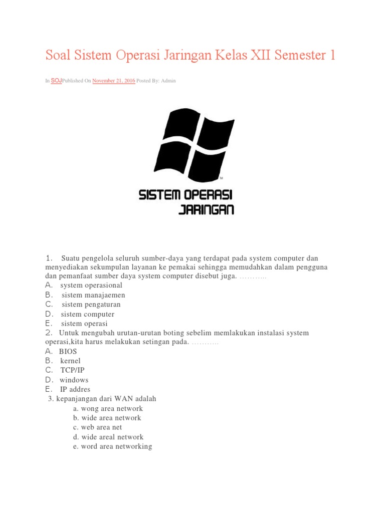 Soal Sistem Operasi Jaringan Kelas XII Semester 1