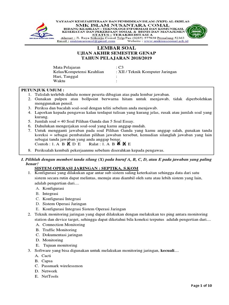 DOC) Soal Ujian Jaringan Komputer | Muhammad Asyazili - Academia.edu