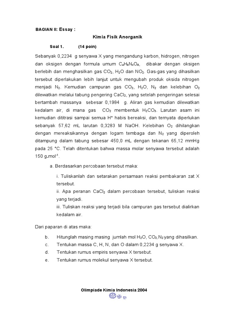 Pembahasan Soal Essay Nomor 6 – OSP Kimia Tahun 2014 | Blog Urip …