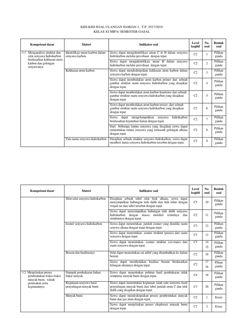 DOC) KISI-KISI SOAL HIDROKARBON Mata Pelajaran : KIMIA Kelas : X …