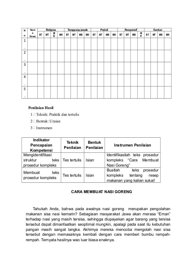 Struktur Teks Prosedur Cara Membuat Nasi Goreng