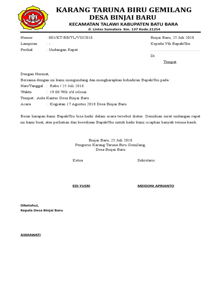 DOC) Surat Undangan Rapat pengurus | Rafi Sucia - Academia.edu