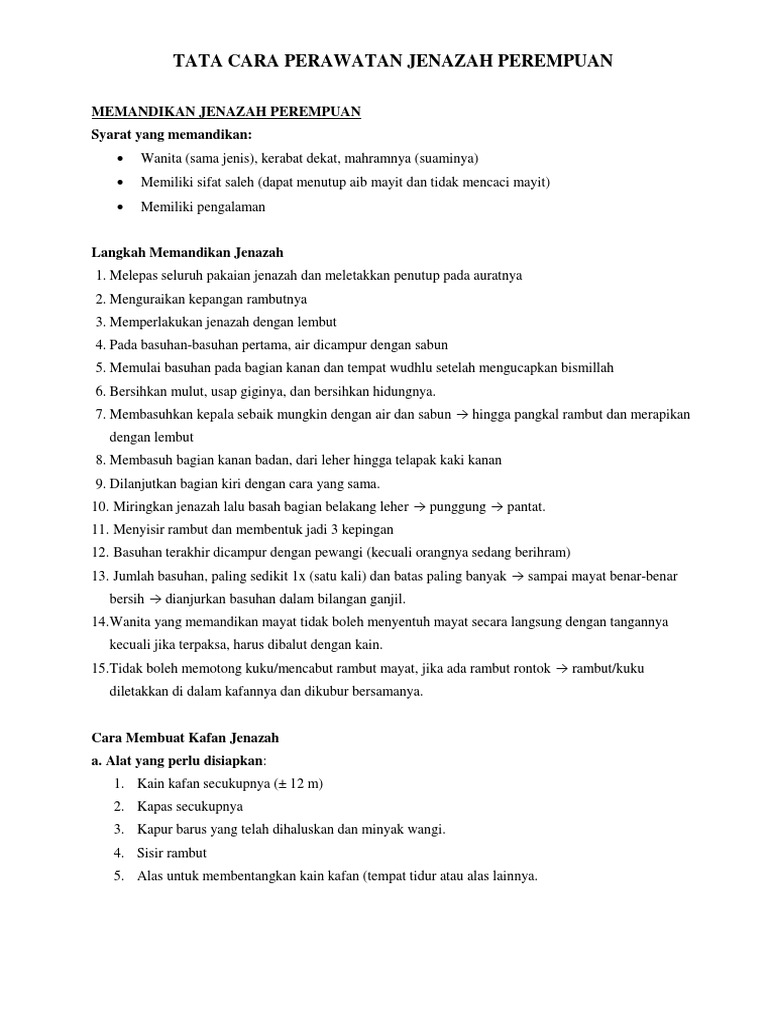 Syarat Doa Tata Cara Menguburkan Dan Mengkafani Jenazah