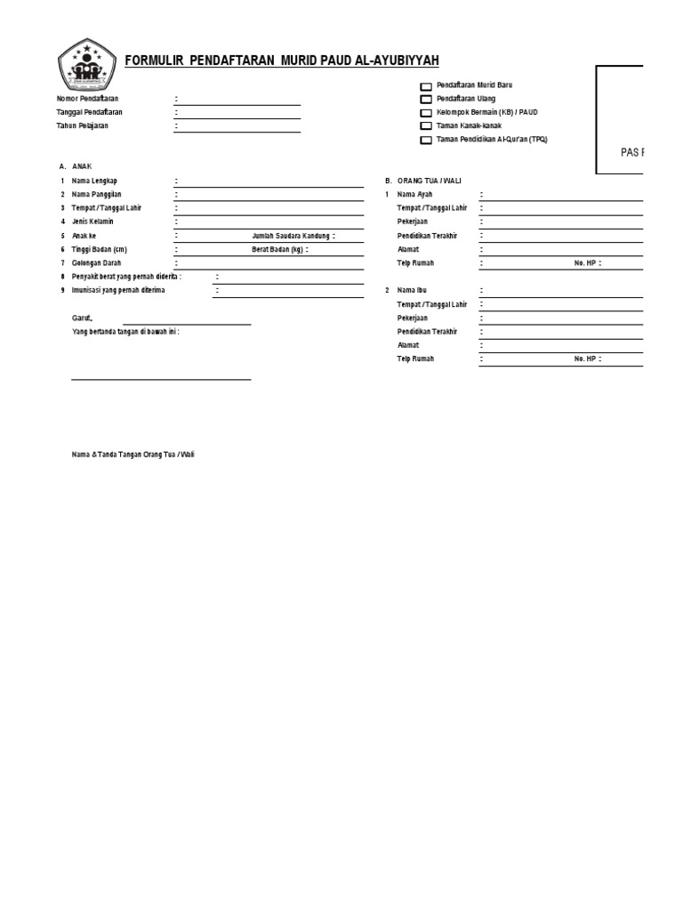 KELOMPOK BERMAIN PAUD ANAK TELADAN .Telp/Hp (Nama dan Tanda tangan Orang Tua/Wali) A. Anak KELOMPOK - [PDF Document]