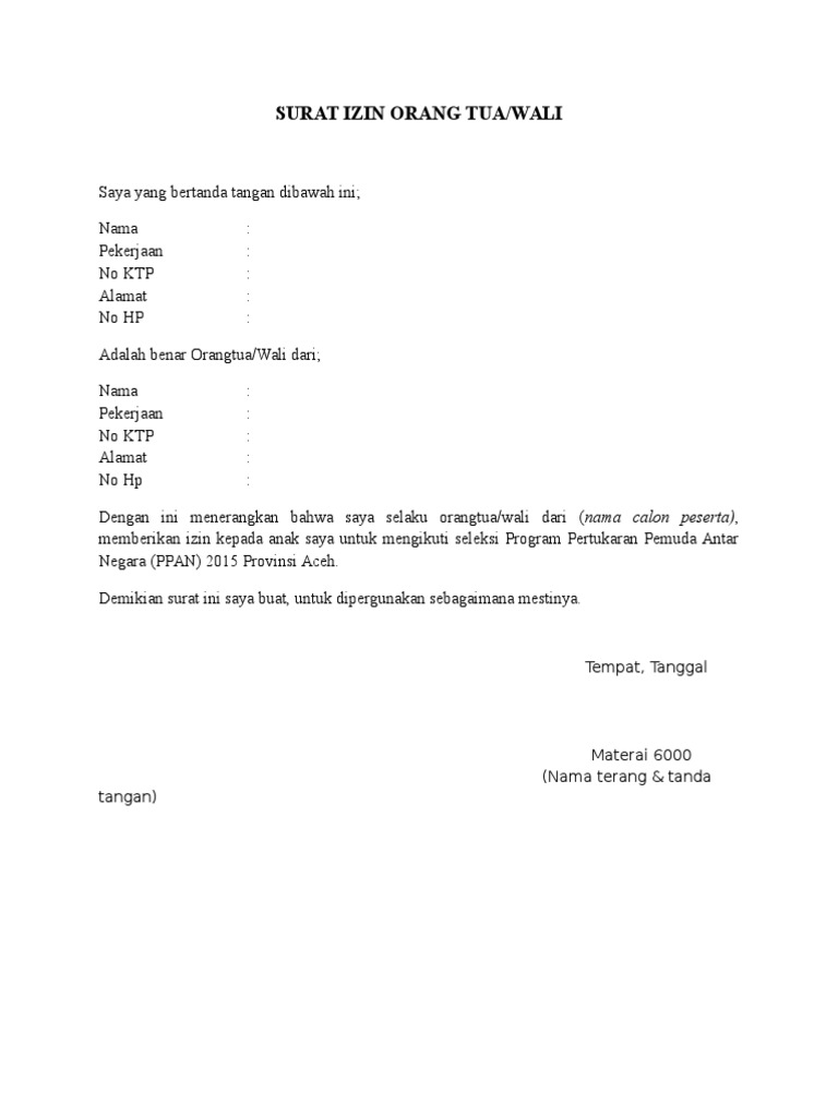 15+ Contoh Surat Izin Orang Tua LENGKAP | Contoh, Cara Membuat, dll