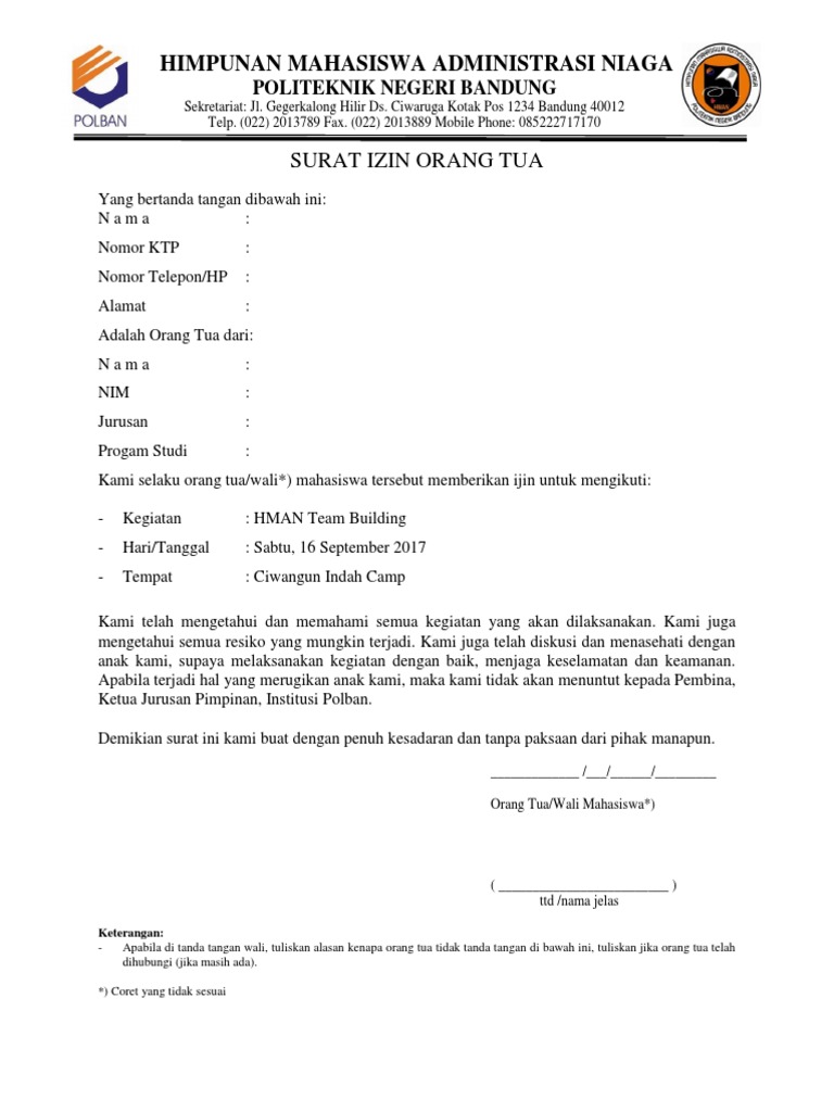 Contoh Surat Izin Orang Tua Semua Keperluan Yang Baik dan Benar