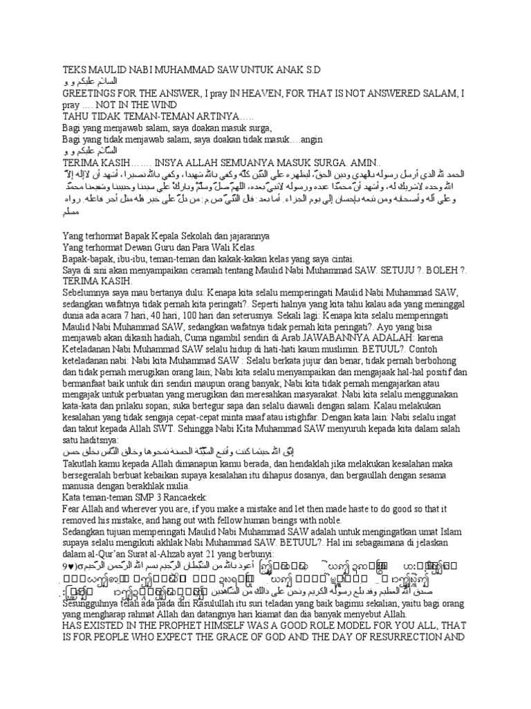 DOC) PIDATO SINGKAT PERINGATAN MAULID NABI MUHAMMAD SAW …