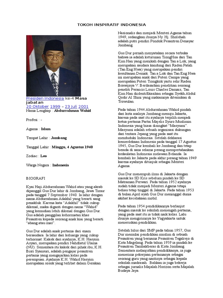 Contoh Biografi Gus Dur Dalam Bahasa Inggris Lengkap Beserta Arti