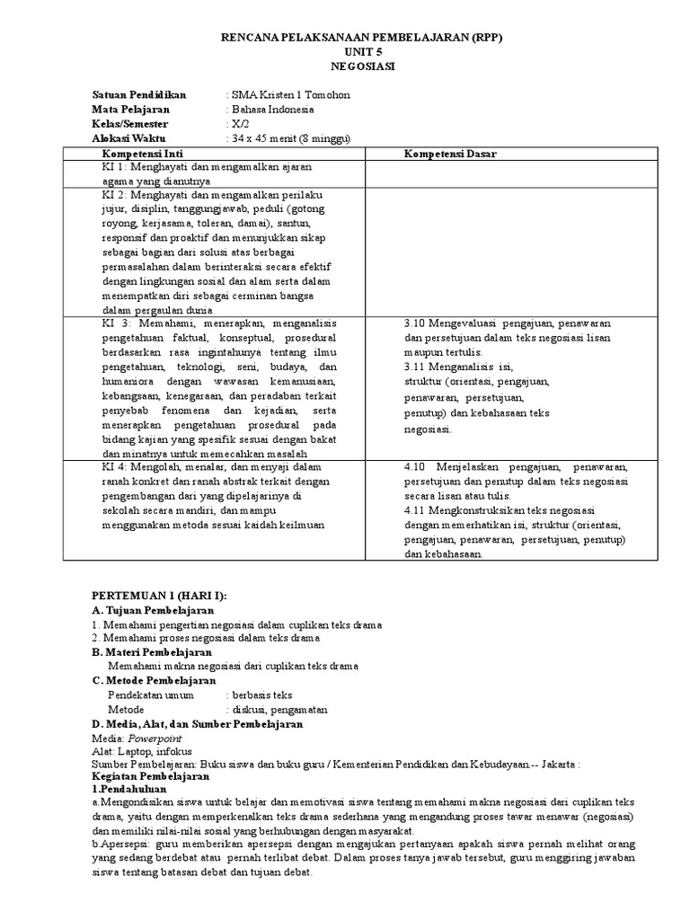 DOC) RPPKelas X Bahasa IndonesiaOK | larasati suroso - Academia.edu