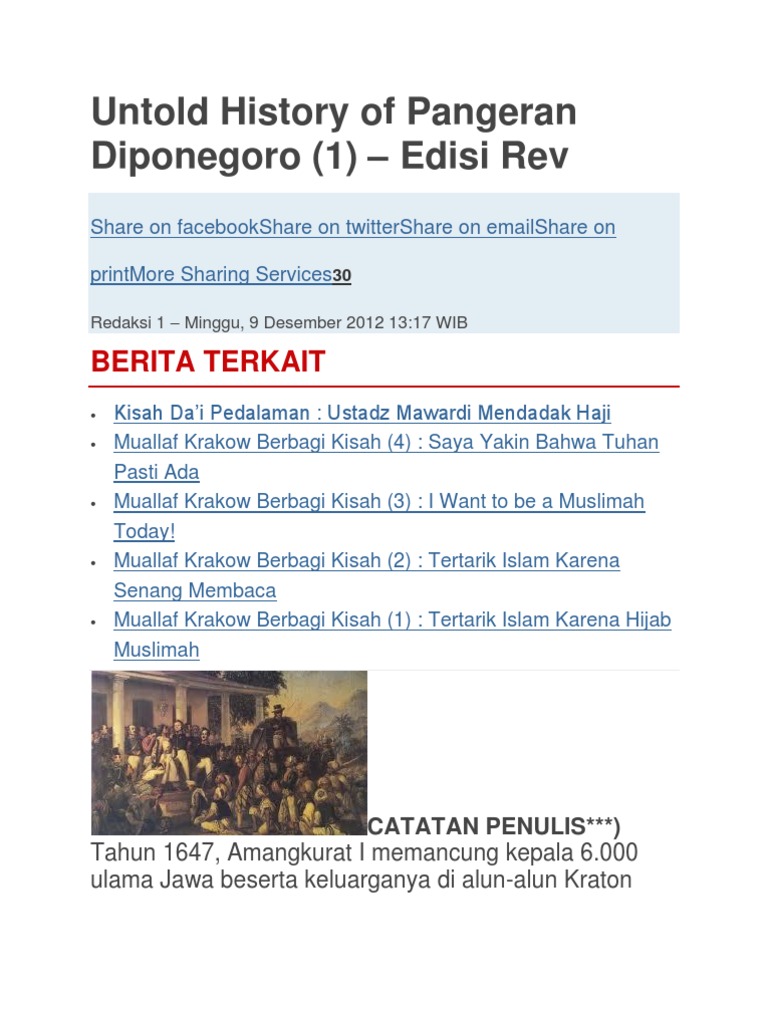 Teks Biografi Pangeran Diponegoro Beserta Strukturnya - Berbagai Teks Penting