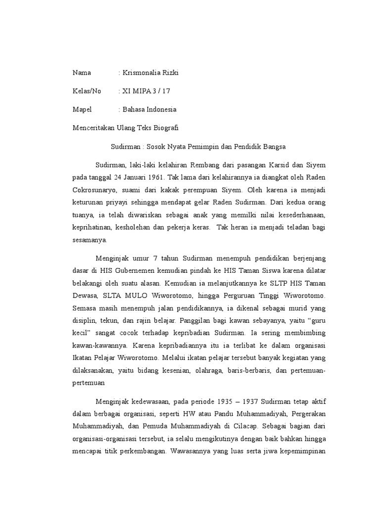 Contoh biografi jendral sudirman singkat bahasa sunda | Referensi Artikel Bahasa Sunda