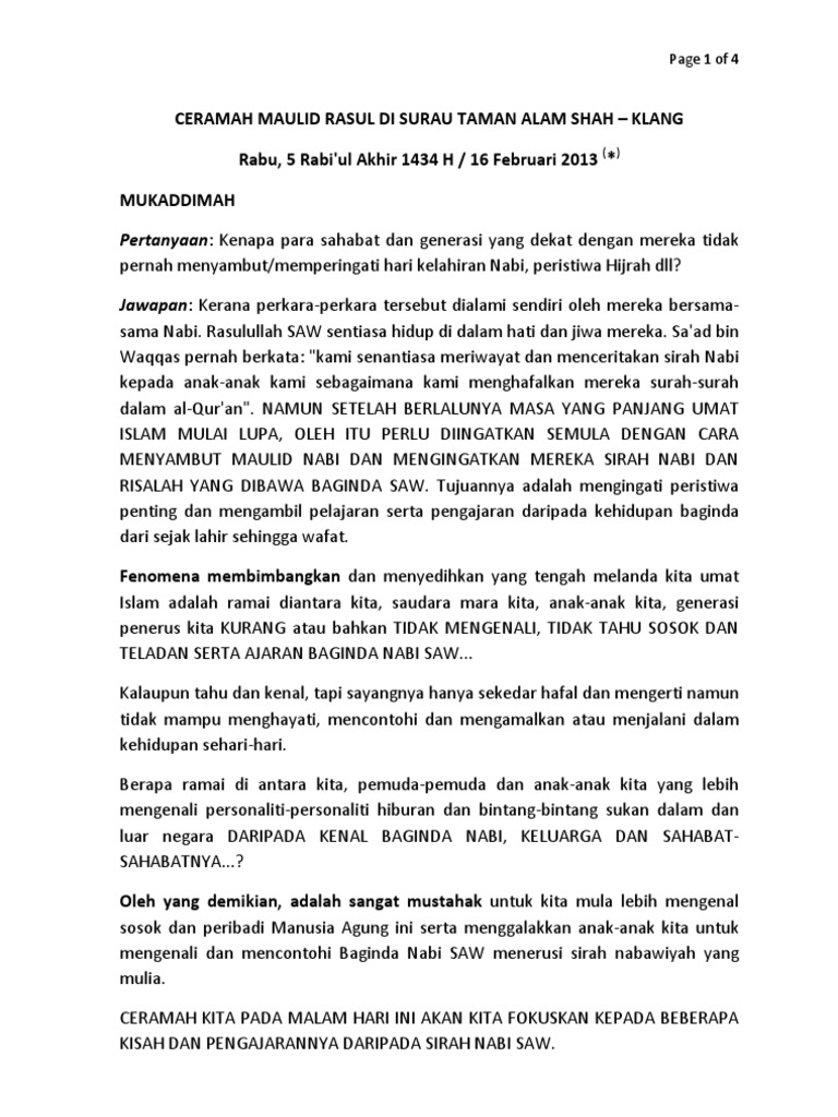 Contoh Teks Pidato Singkat Maulid Nabi Muhammad SAW 29 Oktober …