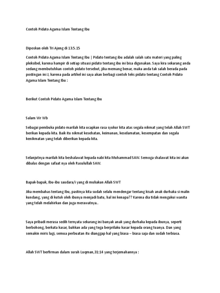 DOC) Contoh Pidato Tentang Ibu Islami | Nina Rosalina - Academia.edu
