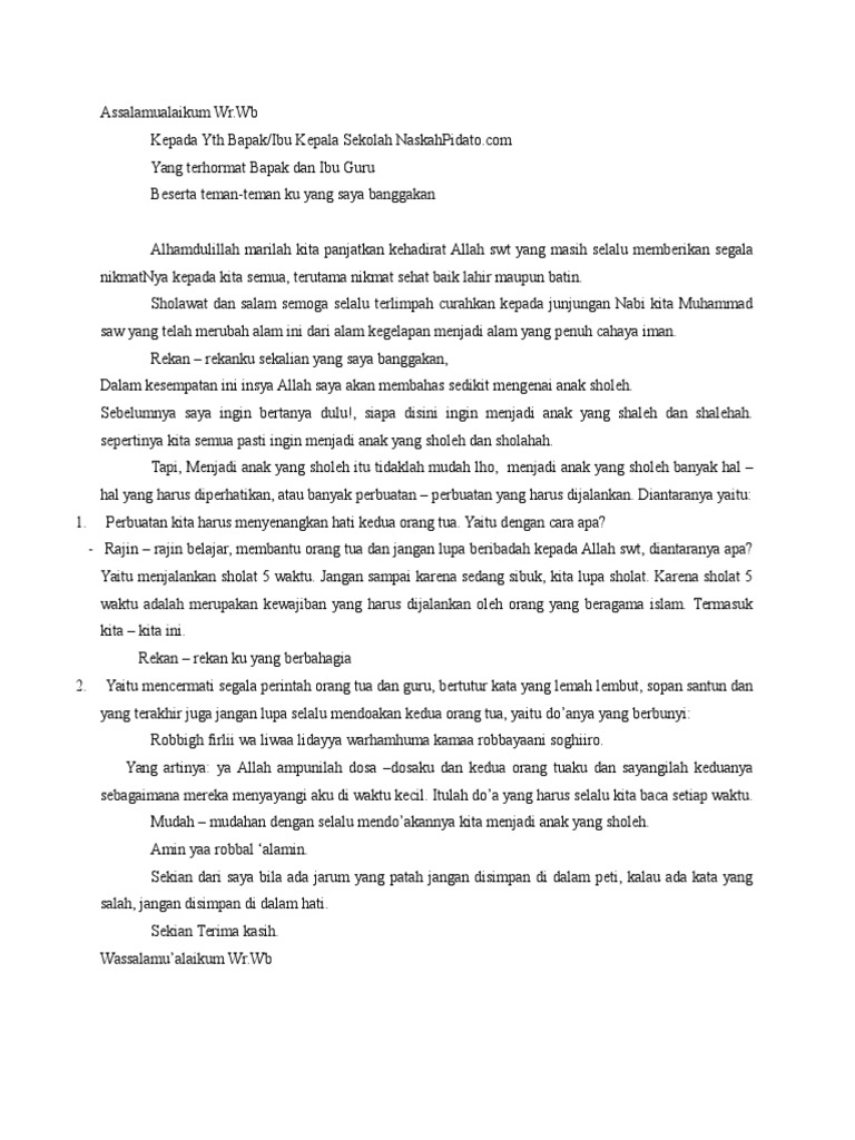 Contoh Pidato Anak Sholeh | Contoh Soal Dan Materi Pelajaran 9