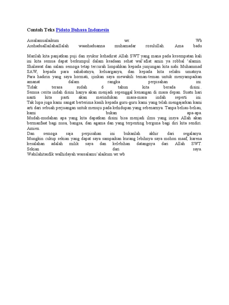 Pidato bahasa indonesia perpisahan