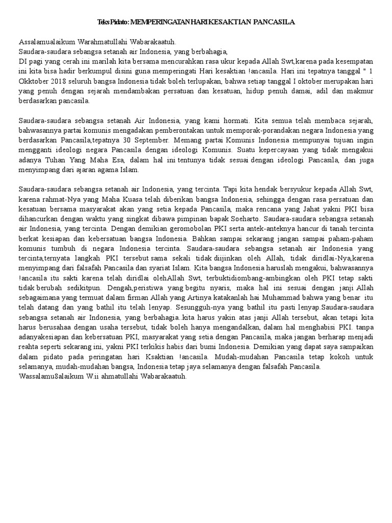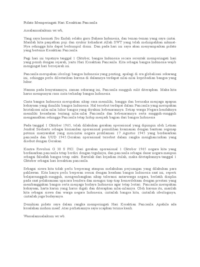 DOC) Pidato Hari Kesaktian Pancasila | marjen sihaloho - Academia.edu