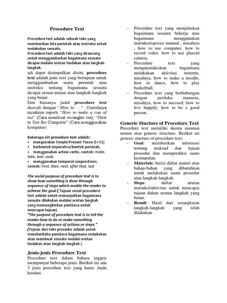 Jenis-Jenis Procedure Text