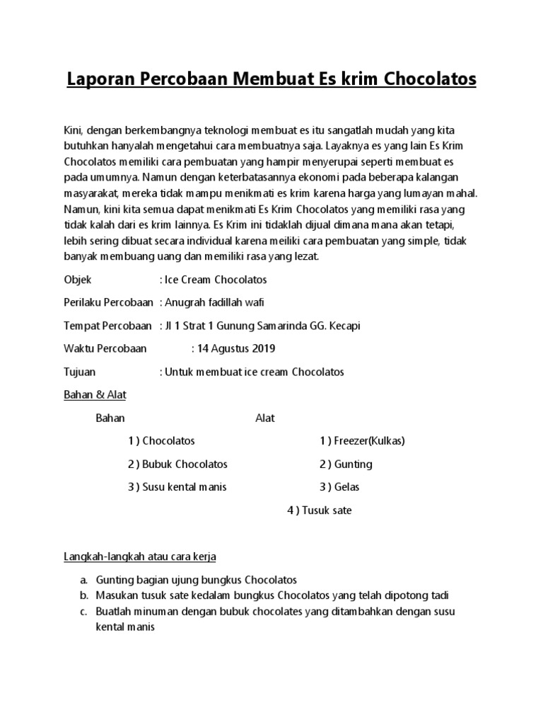 DOC) LAPORAN HASIL PRAKTIKUM PEMBUATAN ES KRIM Disusun untuk Memenuhi Tugas KIMIA | Galih Budiono - Academia.edu