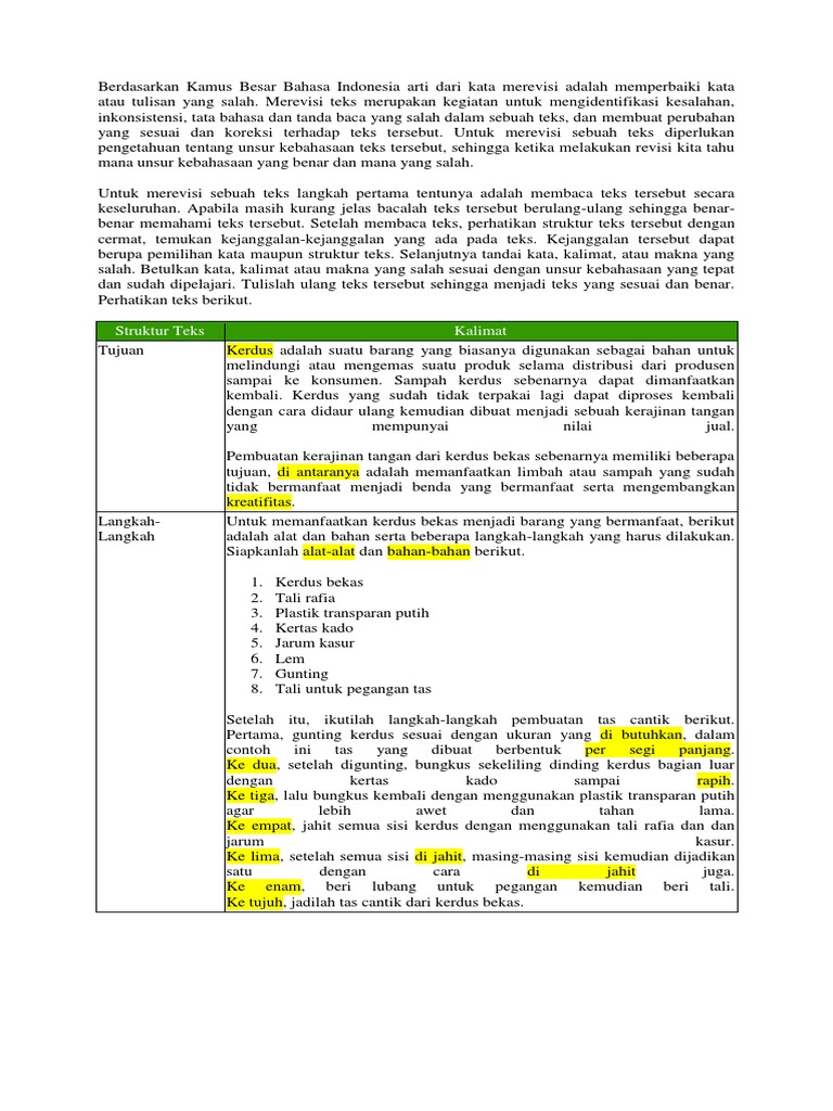 B.(1) Bacalah kembali teks prosedur tentang cara pembuatan tas cantik di atas,.(2) Tunjukkanlah - Brainly.co.id