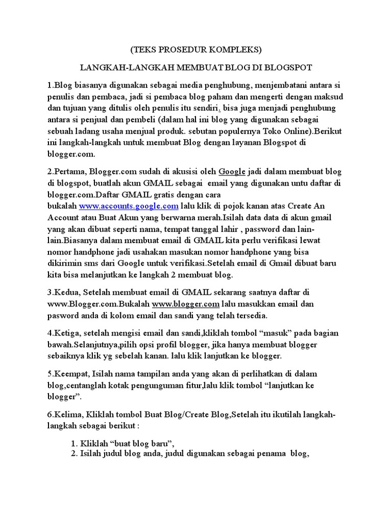 Contoh Teks Prosedur Kompleks Cara Mudah Membuat Blog