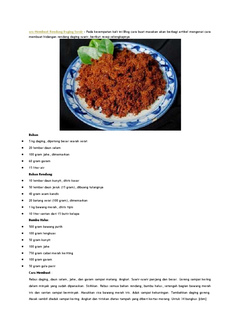 Teks prosedur tentang cara membuat rendang daging - Brainly.co.id