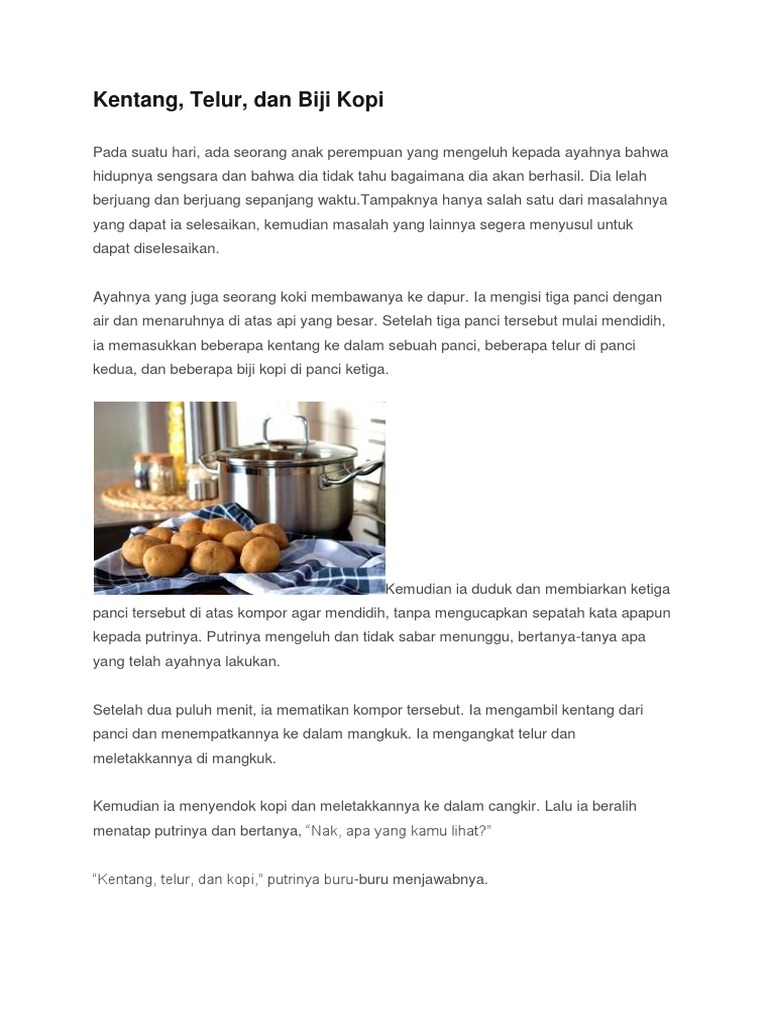 cerita inspiratif kentang telur dan biji kopi - Brainly.co.id