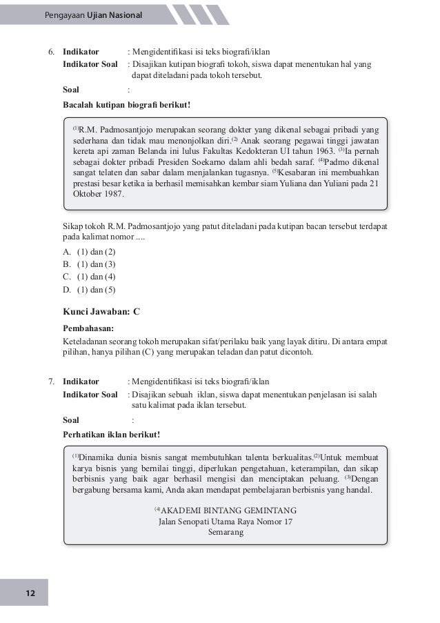 Pembahasan soal un bahasa indonesia smp 2012 paket d47