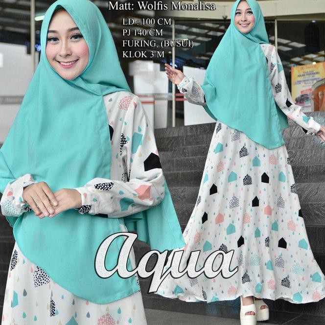 Baju Gamis Syari Aqua Hijau Tosca Motif Segi Lima Bahan Monalisa Murah | Shopee Indonesia