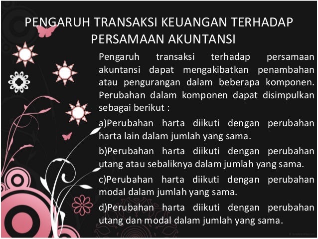 3 transaksi yang mengakibatkan perubahan harta dengan modal pada persamaan akuntansi - Brainly.co.id